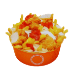 Poulet marine + algerienne + gratine emmental, lardon, oignon frits