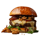 Double smased, iceberg, cornichons, oignons caramélisés, tortiallas Flamin’, sauce TB. Servi avec frites et boisson.