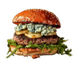 Steak 150gm, Emmental, Crispy bacon, Mesclun, Crispy Oignon, Sauce Maison