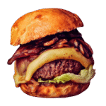 Steak 150gm, cheddar, oeuf, oignon crispy, mesclun, sauce maison
